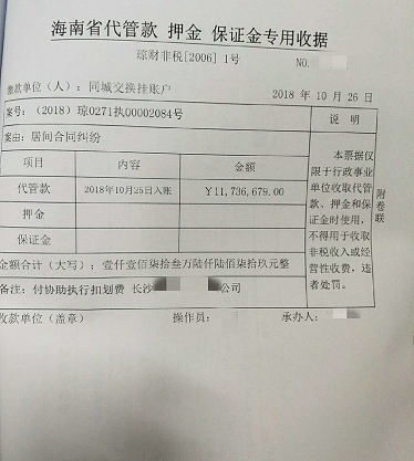 案件进入执行阶段后,申请执行人提供的线索表明,长沙某公司在海南省高院也有一宗执行案件,并且已经执行到4000余万元的案款。符秀柏法官迅速反应,与省高院取得联系,对这一财产信息进行核实,随后,发函请求省高院对其中1200万元暂停发放。2018年10月17日,执行法官申请提取被执行人被海南省高院扣划执行案款中的1173.6679万元,2018年10月25日,海南省高级人民法院执行局将该案款汇入城郊法院执行案款账户,城郊法院已于2018年11月1日将该案款支付给了申请人余某,本案债务全部履行完毕。